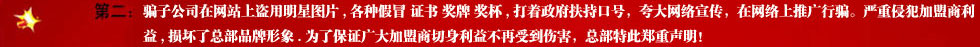 免費再開設(shè)分店(即第2個、第3個店),經(jīng)公司確認(rèn)后,原簽定合同的代表人,需到公司辦理相關(guān)的分店免加盟費手續(xù)。 |