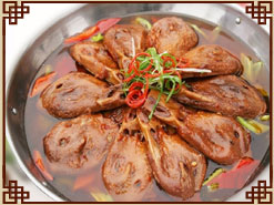 鴨頭集鴨之精華,對人體有良好的補(bǔ)腦、養(yǎng)血安神之功效!案慑侙嗩^”是由川菜創(chuàng)新出的一種風(fēng)味名吃,由30多種名貴香料制成,充分汲取了中餐炒菜之奧妙,又融入了火鍋的精髓,具有中餐之雅趣,更具火鍋之濃情。干鍋鴨頭鮮嫩異香,久食不厭,回味無窮,再配上各種時(shí)令爽口涼菜等特色美食,更是令人大快朵頤、留連忘返! 優(yōu)勢一:干鍋辣鴨頭還可以演化為:干鍋香辣蝦、干鍋豬蹄、干鍋香辣雞等,其制作方法大同小異。先吃鴨頭再涮鍋?zhàn)屇粤送涣,聞著香、吃著鮮、麻的過癮、辣的暖和! 優(yōu)勢二:干鍋辣鴨頭]選料精細(xì)、考究,提前秘料腌漬入味,油品正宗。它由選料、鹵制、準(zhǔn)備配料、味料和炒制的底料、炒制等工藝完成,其成品特點(diǎn):色澤紅亮、口感軟爛而不失其形、葷素搭配合理、口味豐富(不麻不辣、微麻微辣、中麻中辣、高麻高辣)老少皆宜! 優(yōu)勢三:干鍋辣鴨頭既可以當(dāng)作一道特色菜品食用,又可以作為一種火鍋鍋底的形式出現(xiàn),客人可以根據(jù)自己的喜好涮制各種葷、素原料,增加就餐氣氛。再佐以多種名貴香料和藥材,其營養(yǎng)成分充分溶于湯中,易于被人體吸收。其口味風(fēng)味醇厚、香辣爽口、香而不膩、回味長久。 |