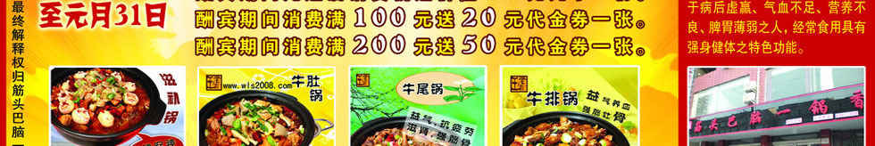 (筋頭巴腦 梭邊魚 羊蝎子火鍋 麻辣香鍋 干鍋鴨頭 鐵鍋柴雞 雞公煲 石鍋魚 諸葛烤魚 三汁燜鍋 )