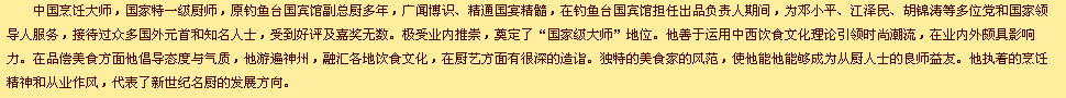 邀國家特級(jí)名廚熊敦勝先生,出任正宗重慶烤魚技術(shù)總監(jiān),全責(zé)正宗重慶烤魚風(fēng)味烤魚、特色名菜、特色名吃等系列美食的技術(shù)升級(jí)及配方研制。